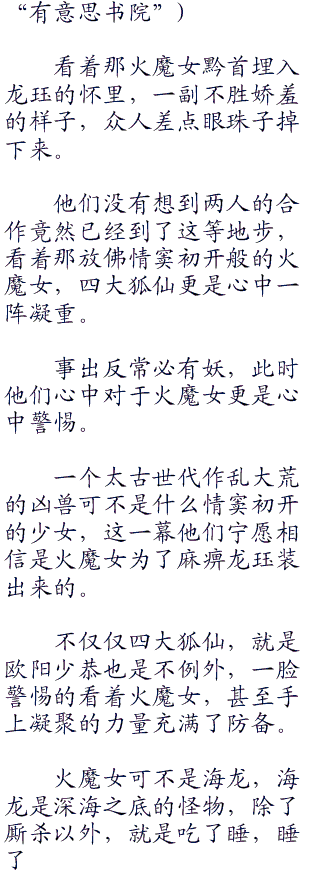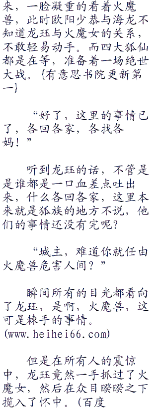 龙珏看着自己怀里的火魔女,那手上的温存,他相信那绝对是真的,他竟然与火魔女发生了关系、