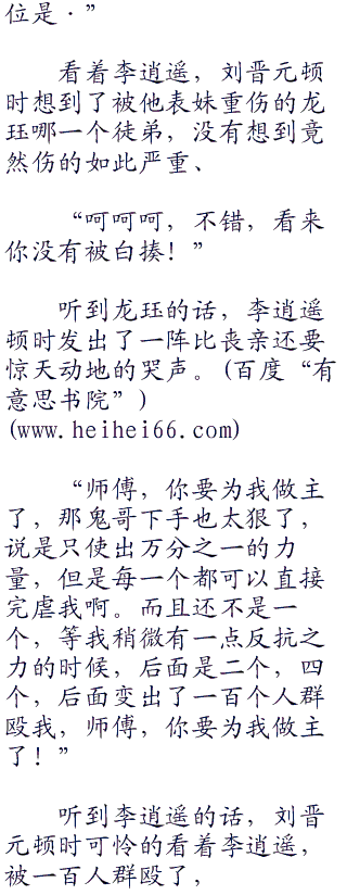 正在刘晋元惊奇的时候,这时候一个‘猪头’走了过来,满脸都是被打的肿包,身上更是青一块紫一块,虽然没有见血,但是这比见血更加可怕、