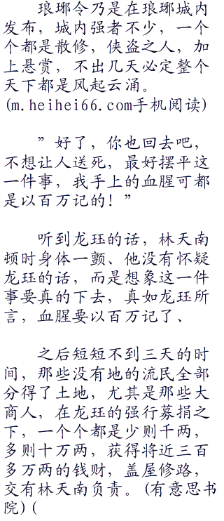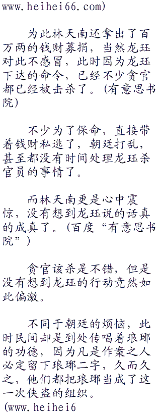 “但是这却是侠道之所为,官官相护,朝廷既然不能拿下他们,自然我就出手了。我已经下了琅琊令,贪官贪污十万以上者皆可杀,然后将其财务散于贫苦百姓!”