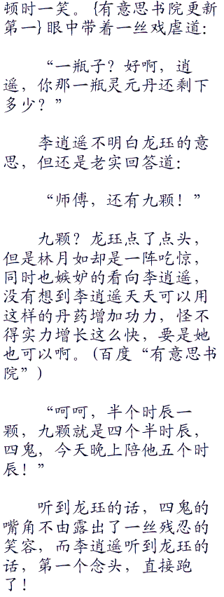 接过丹药,那一阵阵的香气,林月如相信眼前就是那传说中的仙丹了。