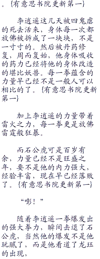 李逍遥的悟性奇高,此时施展的拳法竟然不比石公虎差多少。