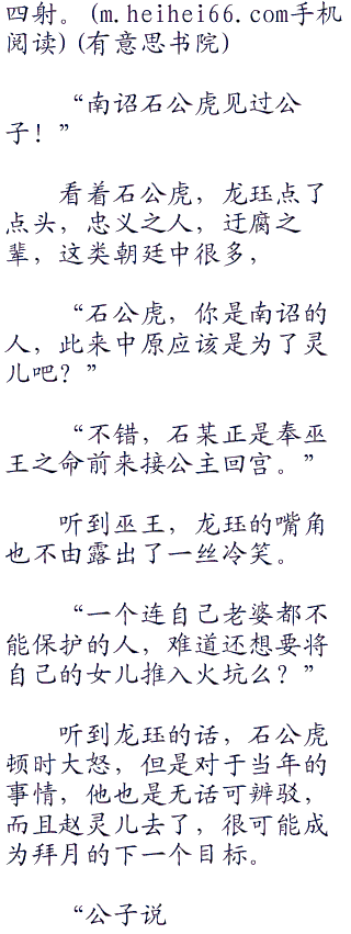 “李兄,我义父乃是南诏开国功臣,三朝元老,这一次是奉巫王之命出山迎请公主回宫的,还请逍遥兄感念巫王思念公主之心,让他们父女早日团聚。手机阅读更方便m..com”