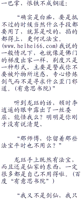 “不过这些为师都不可能给你的,可以给你的,你驾驭不了,甚至被反噬己身。而且修道者的法宝虽然极强,但你要知道一件事,剑仙唯一的法宝就是自己的剑,使用其他法宝,一旦有了依赖,剑仙追求极致攻击的心念就会动摇,所以他们除了对剑的追求,其他就没有多大的需要了!”
