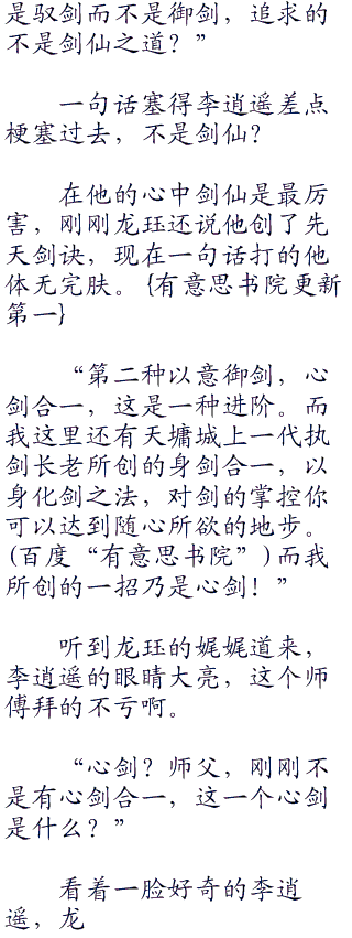 三种?御剑术还有种类?看着龙珏,李逍遥的眼中顿时露出了一丝好奇的求知欲。