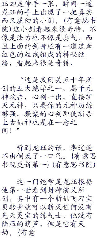 龙珏给他的可是太阿剑,龙珏打算让李逍遥试一试,要是他可以得到太阿剑的认可,甚至以己身度那里面的无上剑气,那么他的成就将无可限量。