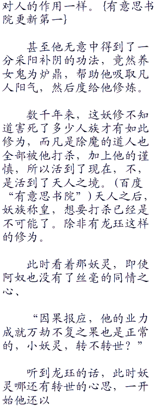 而且化形之后,他并没有因此而内敛,反而更加残暴,甚至有时候以此就是一个村落,因为人的气血正是他们修炼的最佳补品,就是妖兽的内丹