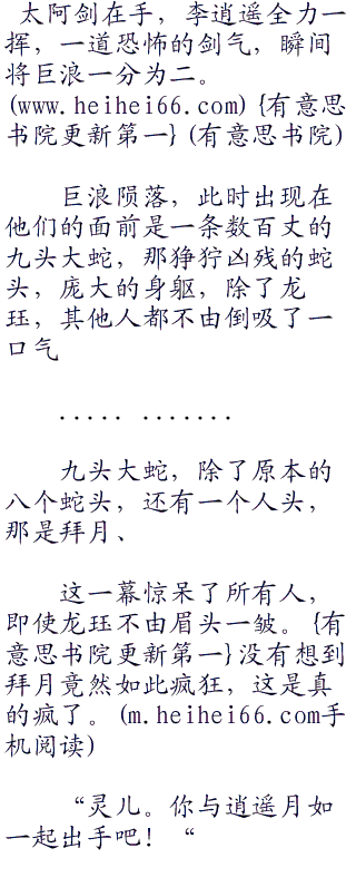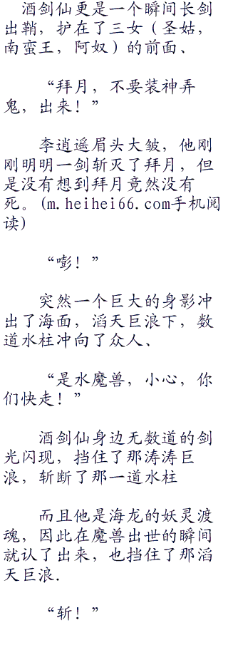 两人相视一眼,随着两人缠绵而视,一起挥出的剑气竟然奇妙的相合在了一起,冲破了那重重巨浪向着拜月而去。