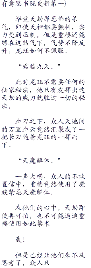 惊天巨响之后,众人只见天空中已经没有了了龙珏的身影,而持刀的重楼再次一道血芒劈向地下。
