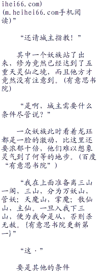 “我是琅琊城的主人,刚刚我用**力在这里立了道场,设下禁止,凝聚灵气。你们也看到了这里的情况,琅琊城今后对妖仙魔一律开放,你们可以在这里这修炼,甚至你们可以在这里摒弃天地之规则,与人通婚!“