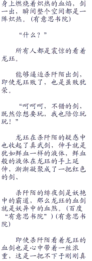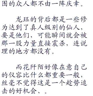 而杀阡陌也没有再出手,龙珏说的不错,看着那人狼狈的样子,他的气也出了,自然也没有例会一个蝼蚁。