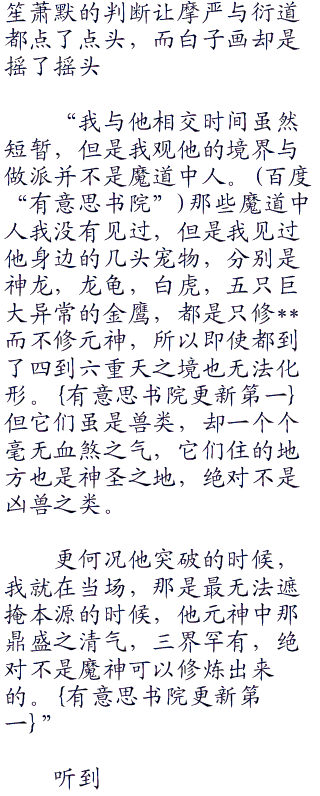 “所以当时清虚真人就以为他是妖神夺舍!但是根据我的观察与清虚这一年的反思,最后的结果·”