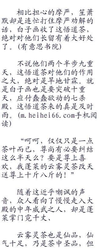 “呵呵呵,尊上昨日挡住了杀阡陌,也就是拯救了蜃楼之上的所有人,这点悟道茶我还是出的起的。昨天师傅之死致使我突破之时出了一点意外,所以不能亲自前往,城内的顶尖高手也因为要为我护法而不能离开琅琊城,难道尊上认为这点悟道茶能够与昨天不堪后果的损失相比么?”