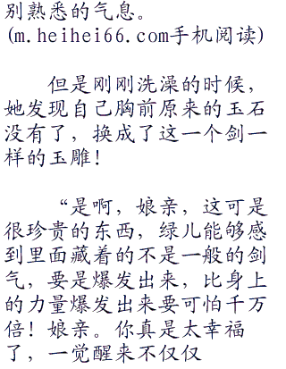 “娘亲,这是天大的好事,洗筋伐髓就是将你体内的脏东西排除,更是适合修炼,甚至增加功力。我能够感到娘亲的体内有着一股很强大的力量,但是娘亲不懂得修炼,所以不知道如何运用这股力量!要是娘亲可以动的如何运用这一股力量,比绿儿要强大好多好多倍。”