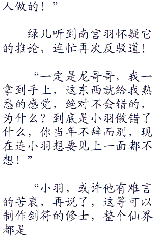 听到南宫羽的话,历千羽看着手上的东西,这一件剑符很是奇特,竟然给她一种特