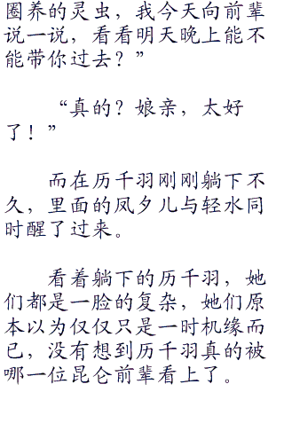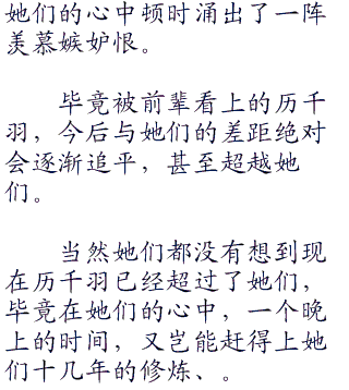 此时华小羽感到一条光明大道就在自己的眼前,而且今天的指点,她一点没有怀疑龙珏的话。