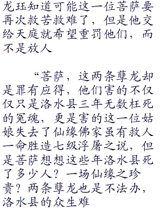 龙珏知道白素贞受的是观音点化,没有想到这一次观音竟然会出现在他们洛水县