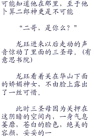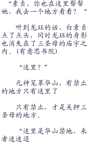 “华山上好像很荒凉,没有什么人?不说华山乃是五岳名山么,应该游人很多的,听说这里还有一位善良的女神,怎么可能这么凄凉?”