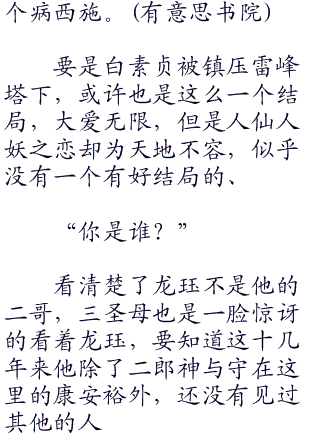 听到龙珏的话,小青一路上也知道了三圣母的底细,那可是玉帝的外甥女,天界战神二郎神的妹妹,谁敢关这样的人物。