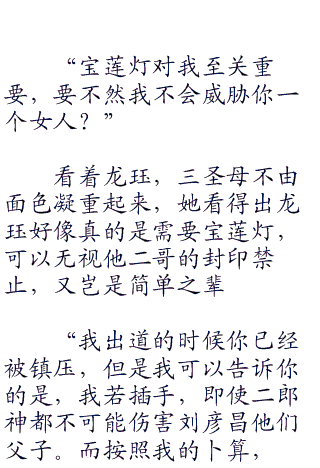 龙珏不知道现在三圣母遇到了刘彦昌没有,但是宝莲灯却是他志在必得之物