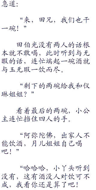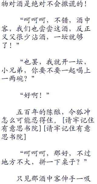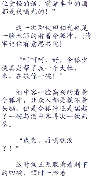但是令狐冲却是感到冤枉无比,你能怪我么?要不是你拿出来,我能够全部喝光么?
