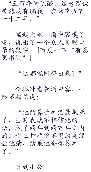 五百年的陈酿,顿时所有的酒客都是震惊的看着那两个酒坛,即使令狐冲也不例外。