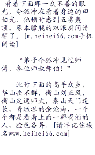 三人饮而尽,但是却不知道被刚好进来的几个五岳剑派的掌门看的清清楚楚。