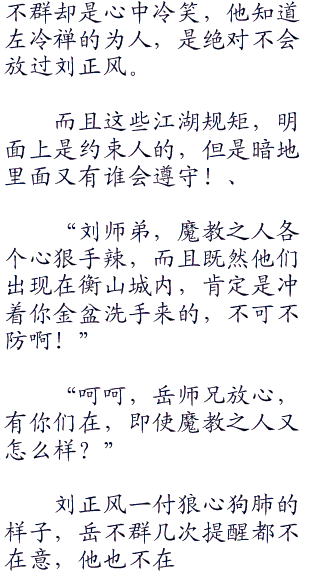 令狐冲一声叫好,但是迎来的却是岳不群的一瞪眼,立刻闭嘴退到了一边。
