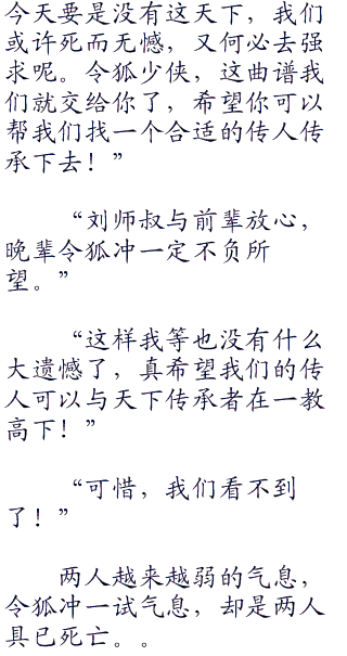 同时两人对视了一眼,手上的琴箫更加的急奏,听起来仿佛血雨腥风就要来临一般。