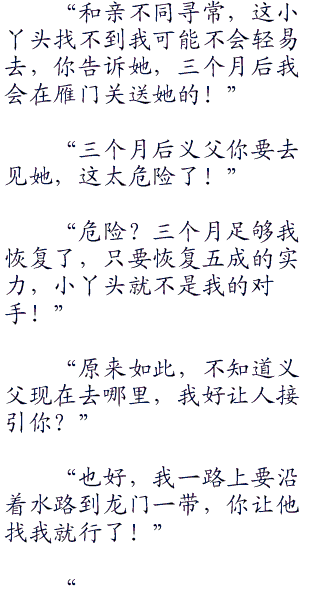 “这一次和亲可是事关边关百姓的安危,要是她能迷惑住北元的君王,边关百万百姓至少可得几年的和平!”