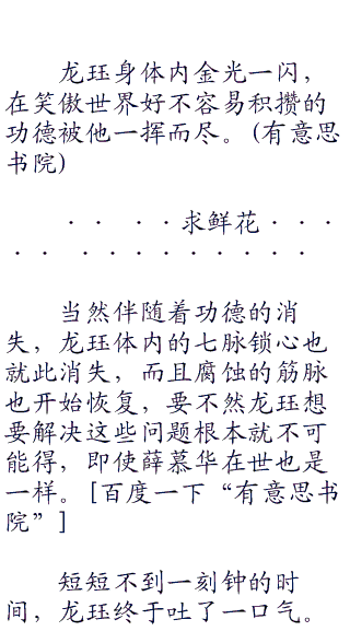 玉无瑕不由大惊,连忙运气给龙珏整理静脉。