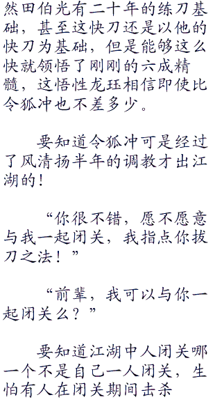 一个时辰后,田伯光感觉自己舞的已经是另外一门快刀了,
