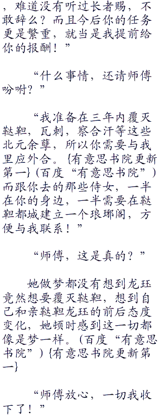“我没有什么可以送给你的,这两把短剑,一长一短,全部都是削铁如泥,切金断玉的宝剑,送你防身。短剑配合你的剑术,鞑靼那边没有人可以伤害你,匕首随身安放,可以起到意想不到的作用!”