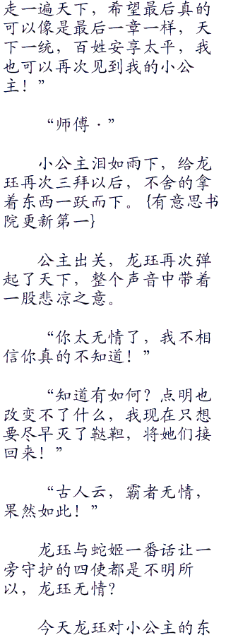 站在马车上,此时小公主早已经泪流满面,第四章的美好让他向往,同时龙珏也是向她传递着消息,总有一天,他们会团圆的。