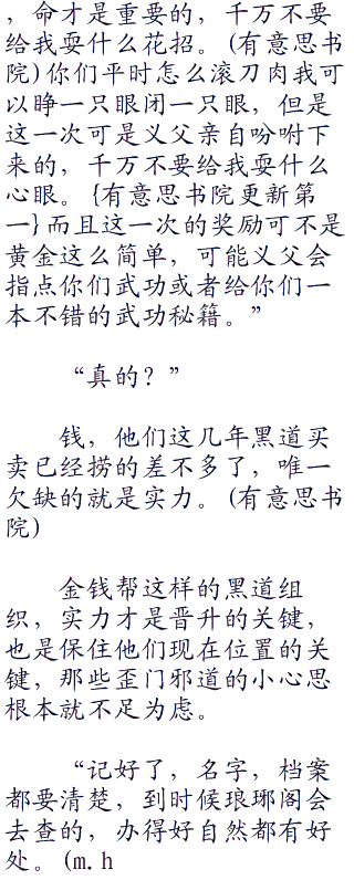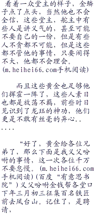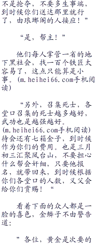 七堂是除了这三个地方之外,金钱帮在这之间七省设立的分堂,下面各设四个分舵,这些堂主舵主最差都是一流高手,也是他们金钱帮称霸江湖的基础。
