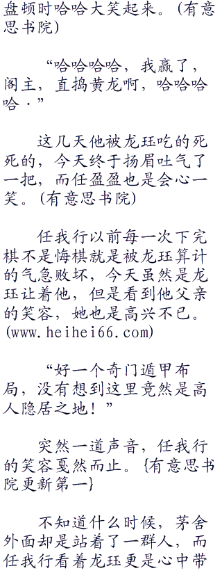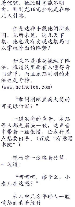 而且为了清静,龙珏命绿竹翁改了竹林的布置,是整个绿竹林变成了一个奇门八卦,让任我行更是惊骇。