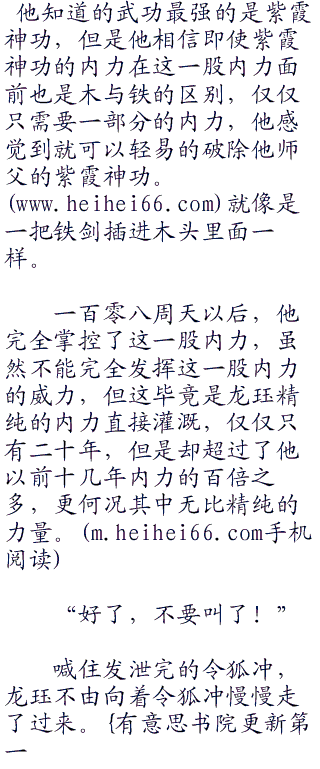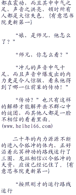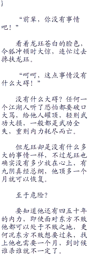 “我现在开始传功给你,记好了路线,而且我仅仅只是传授二十年的内力给你,但是这二十年的内力也足以让你纵横江湖无敌手!”