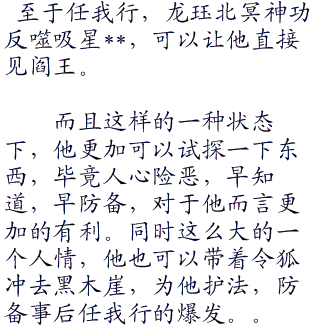 奇门遁甲阻挡,除非任我行精通奇门遁甲之术,要不然根本就不可能找到他们。