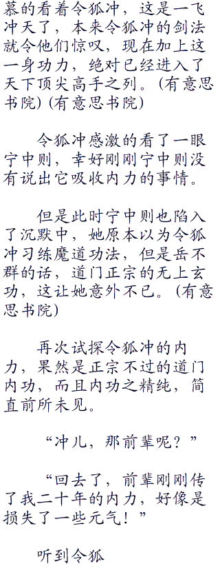 “哎,令狐小兄弟,可怜之人必有可恨之处,可恨之人必有可怜之处,你还是起来吧,顺便离开这里。记住了,北冥神功千万不要传于任何人,要不然会一个我杀一双!”