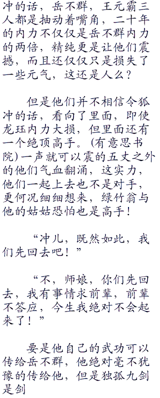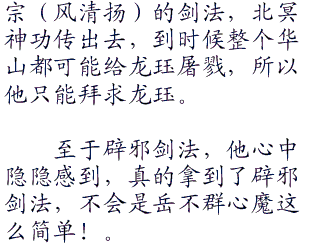 当然他感到不忿的还是剑气之争竟然由此而来,顿时他感到这葵花宝典与辟邪剑谱简直就是他们华山的祸害,根本就不是什么好东西。