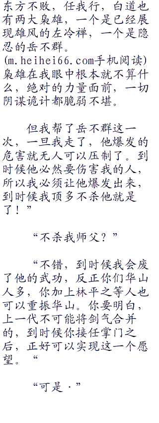 岳不群重点还是一个伪字,这一次他或许可以帮助岳不群“二六七”,但是这一种伪君子比左冷禅与任我行更加可怕,这也是龙珏一直不愿意帮助岳不群的原因。