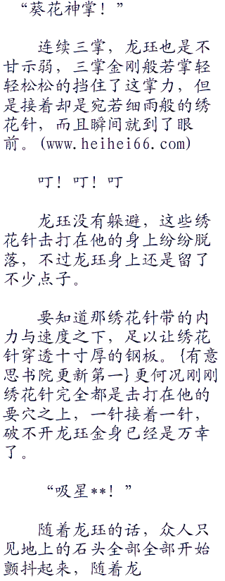 而且就威力而言,看着他们在掉落下去的时候都是一个个进去了罡气罩半尺,以龙珏的全力施为,即使他我行施展暗器都没有这威力,更何况那么多的绣花针。