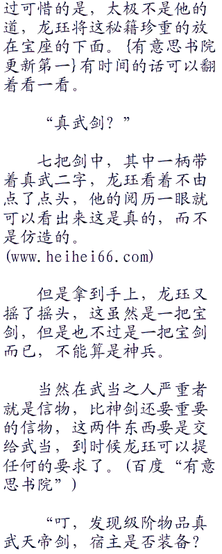 不过他也看到了自己想要的东西,太极拳经,七把剑中,一把应该是真武剑。