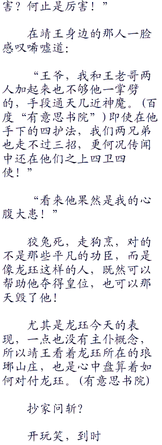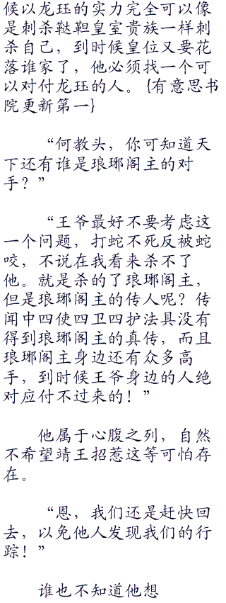 他想要骂几句,但是想到这两个人的实力,在他看来与神魔已经无疑,王府内的护卫在他们的手上,即使统领也走不过一招,他们的失败只能说明一件事,龙珏太强了!