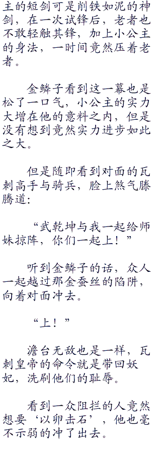 他们这一次主要的敌人不是那些鞑靼士兵,而是四个来自美瓦刺的高手,毒龙尊者,他的两个徒弟,以及澹台无敌。