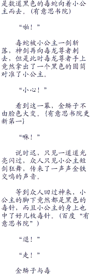 天外飞仙,看着犹如仙女一般持剑而来的小公主,毒龙尊者不由脸色大变,此时他根本就不是小公主的而对手,更何况一旦他拖延久了,到时候他直接也就不治身亡了.. ....