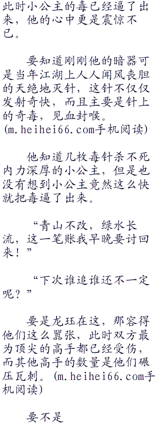 一手奕剑术,此时小公主对于老者的招数已经了解的差不多了,虽然不能击败老者这样武功已经达化境之人,但是现在她至少已经不惧老者的怪招了。