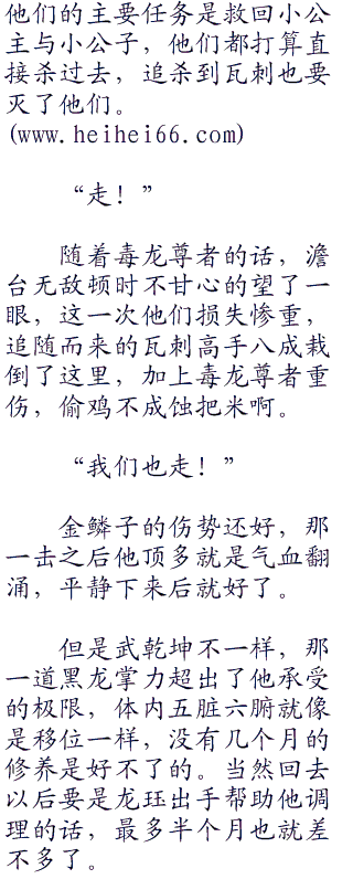 但是紧接着一道黑龙却是直接打中了他的身体,将他击飞了出去。他刚才全心防备着小公主,却是没有想到自己的攻击竟然还返还了回来,一掌将他打得气血翻涌,五脏重伤。