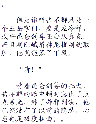 “我说岳不群,难道你还没有明白阁主的意思么?阁主就是要令狐冲出来统领群雄,做那副盟主,到时候你华山派掌门的位子也该让让了!”