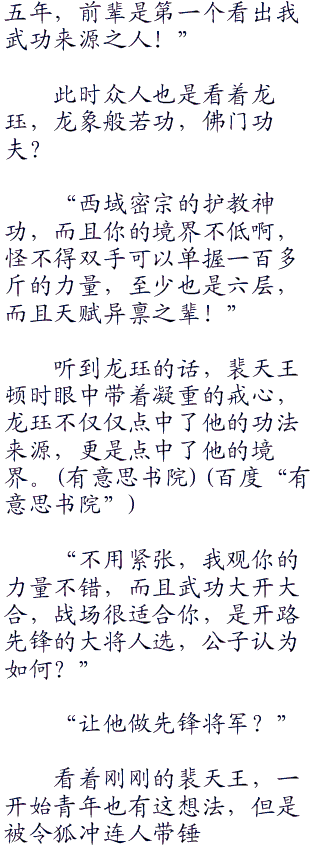 “回来吧,裴天王,令狐少侠可是得到过阁主灌顶传功,你那力气在我们这里或许不可抵挡,但是少侠眼中根本什么都不是!”