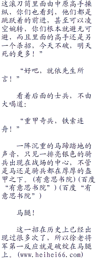 一声声惨叫,只见那些骑兵冲到盾牌前面想要用战马一脚踏开盾牌,但是后面三根棍棒顶着,他们注定是失败的。